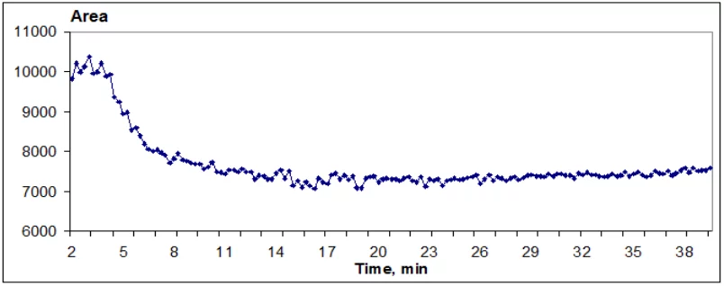 You need to take measurement for at least 30 min (BW 1.0) or 6 min (BW 2.0); the maximum time is not limited. In a calm, peaceful environment, after initial setting for about 3 minutes signal becomes quite stable (see graph below).